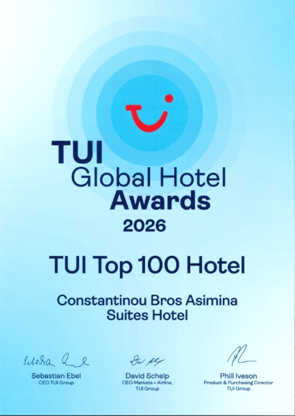 Z dumą informujemy, że nasz hotel Asimina Suites został uznany za jeden z 100 najlepszych hoteli TUI na rok 2026, co jest wyróżnieniem przyznawanym w ramach prestiżowego konkursu TUI Global Hotel Awards. Wyróżnienie to podkreśla konsekwentne dostarczanie przez hotel wyjątkowych wrażeń gościom, plasując go wśród najlepszych hoteli w globalnym portfolio TUI.
