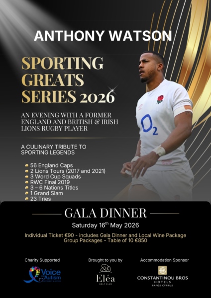 W tym specjalnym wydarzeniu charytatywnym weźmie udział gość VIP Anthony Watson – były reprezentant Anglii i gwiazda rugby British & Irish Lions – łącząc światowej klasy golfa z wyjątkową gościnnością w Pafos.